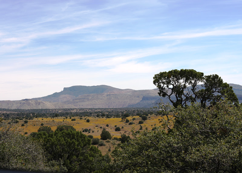 A view on our drive back of the Chino mine and a field with yellow flowers |